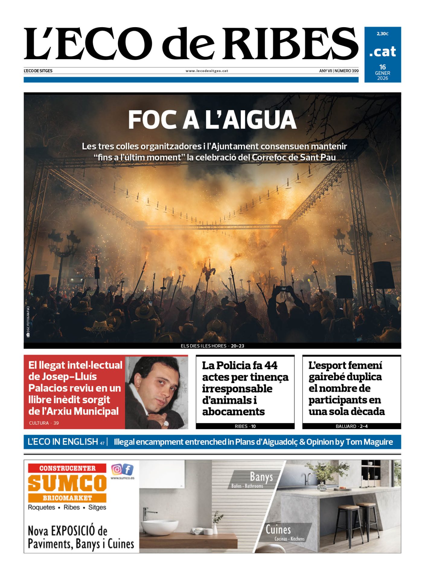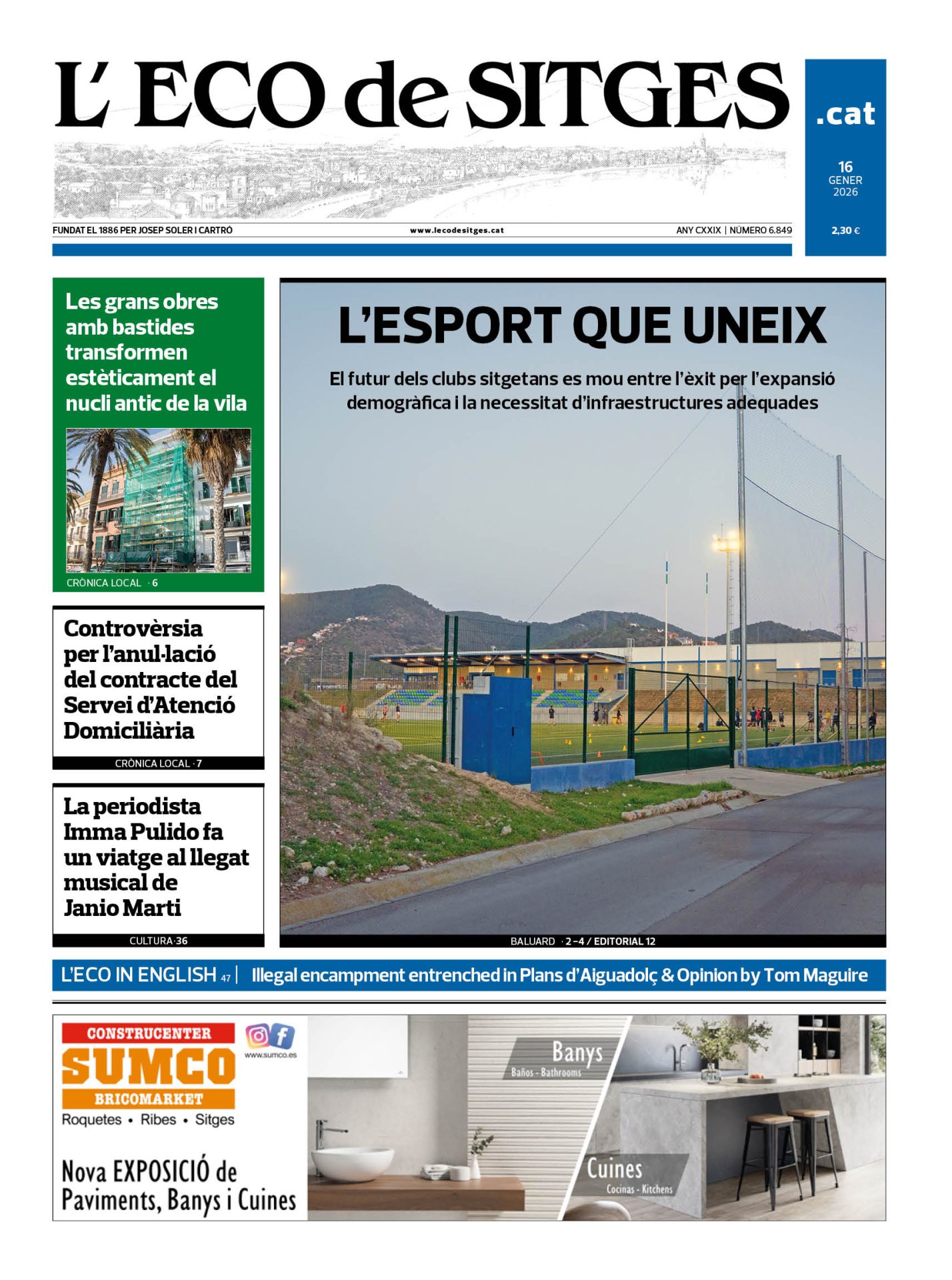 La portada de L'Eco d'aquesta setmana destaca la radiografia de l'esport sitgetà i ribetà, que es desenvolupa en un extens reportatge de tres pàgines;...