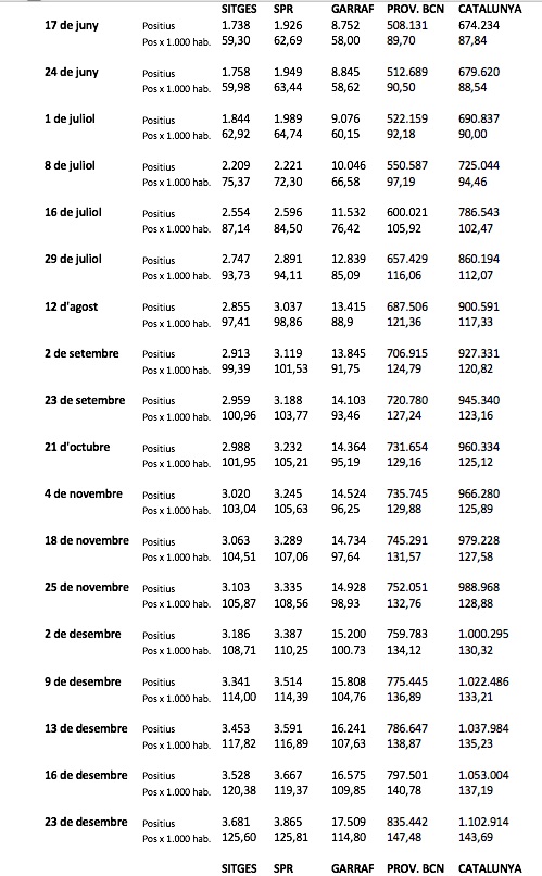 L’expansió de la Covid és a Sitges més del doble que la mitjana catalana (2 de desembre de 2021)