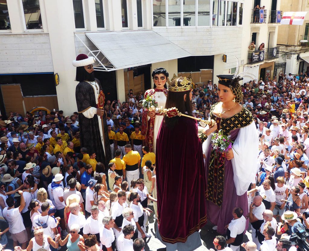 Les processons i sortides dels balls han seguit la pauta habitual. En alguns casos tallades, en altres a bon ritme, però seguint la norma habitual, marcada per les ganes dels balladors i una gentada que ha sortit al carrer a veure-les. L’Ofici, celebrat per mossèn Rafel Vilaplana (al ser diumenge no van venir altres autoritats eclesiàstiques), també va tenir una durada acceptable. A la Sortida d’Ofici es van desplegar, des d’un dels edificis de davant de l’Ajuntament, una bandera estelada gegant (com és habitual en els darrers anys) i una pancarta de grans dimensions contra el rei.